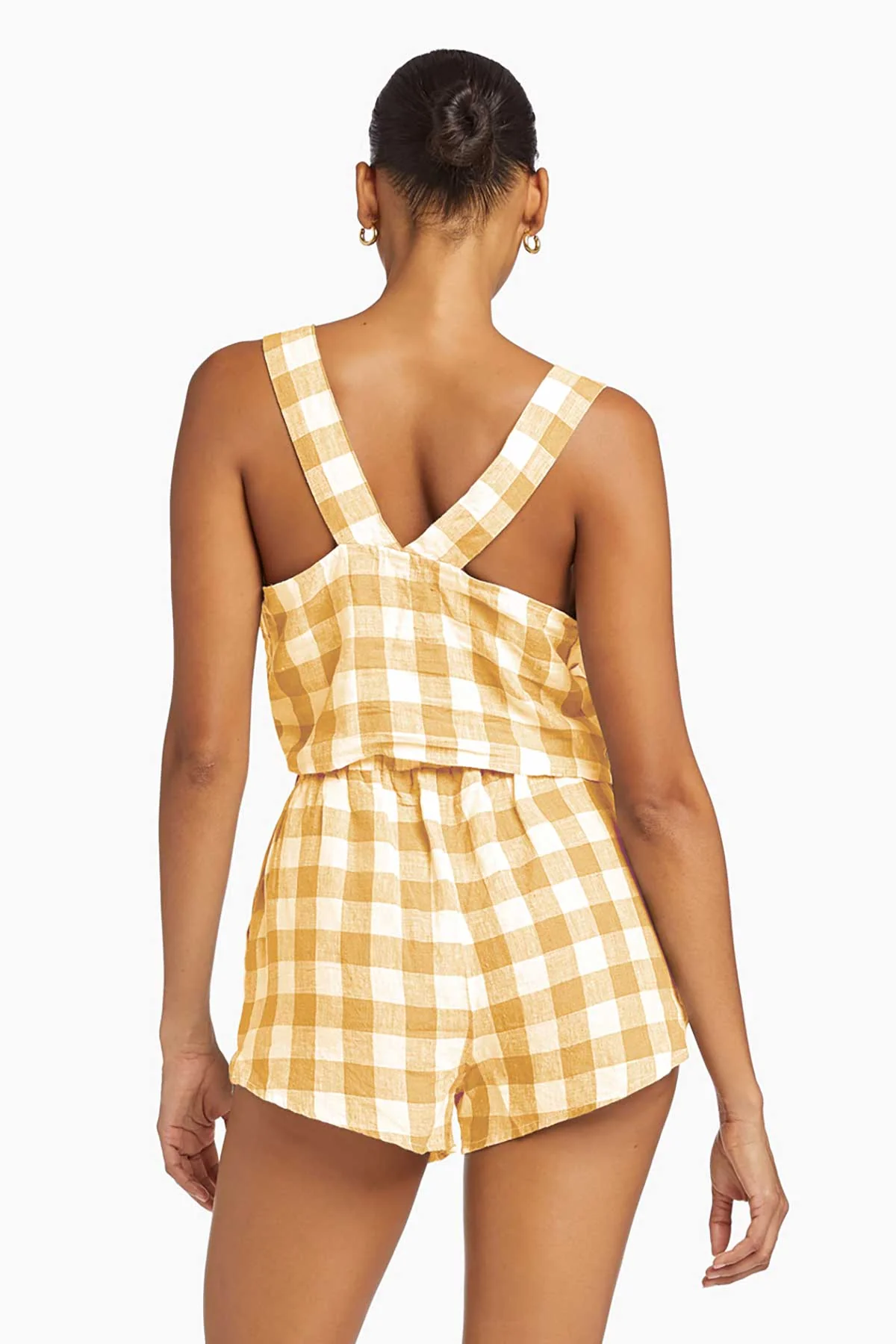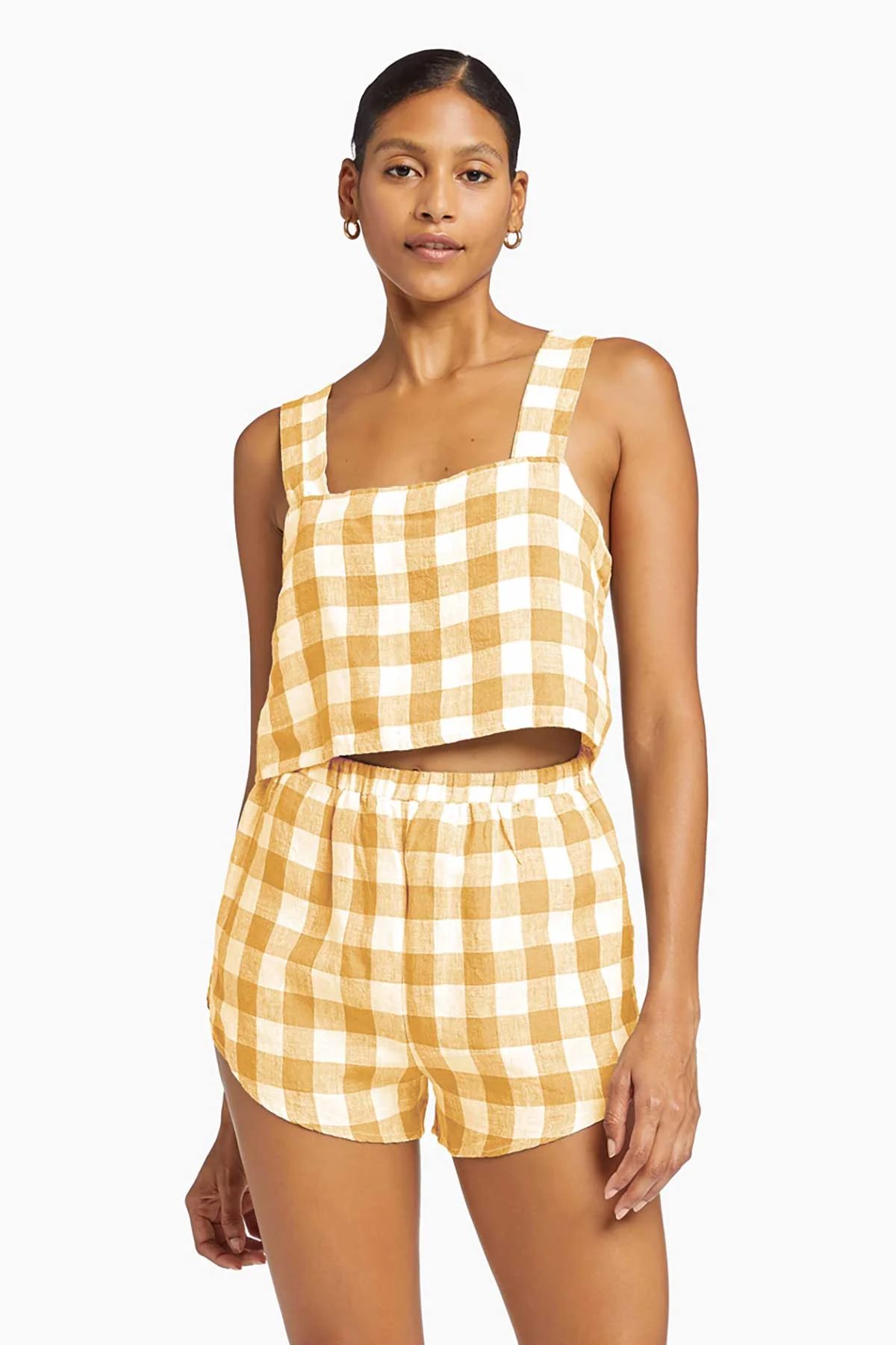 Paired with the Vitamin A Tallows Linen Crop Top- EcoLinen Honeycomb Gingham